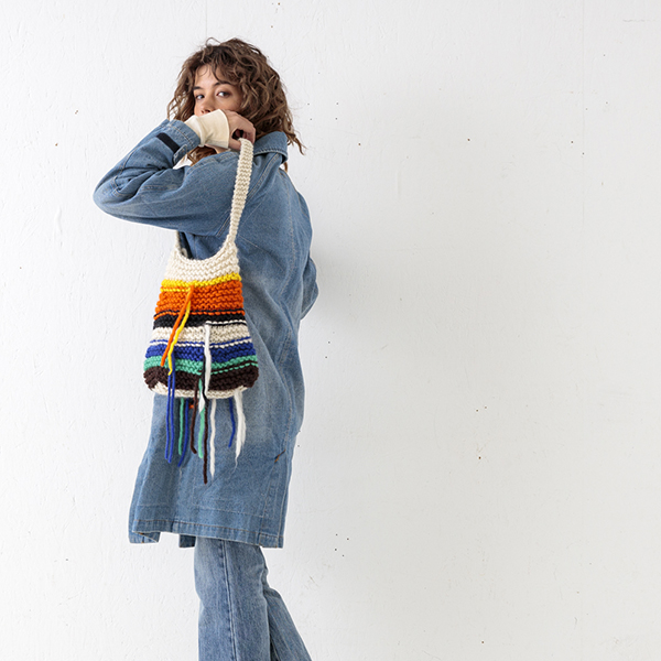 Code:SB213-0607 Name:KNIT STRIP HANDBAG Price:¥3,900 Color:ORANGE/PINK/GREY Made in:NEPAL Material:MOHAIR20%WOOL40%ACRYLIC40%
